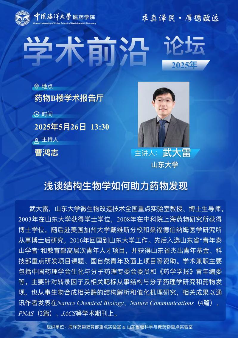 报告题目:浅谈结构生物学如何助力药物发现