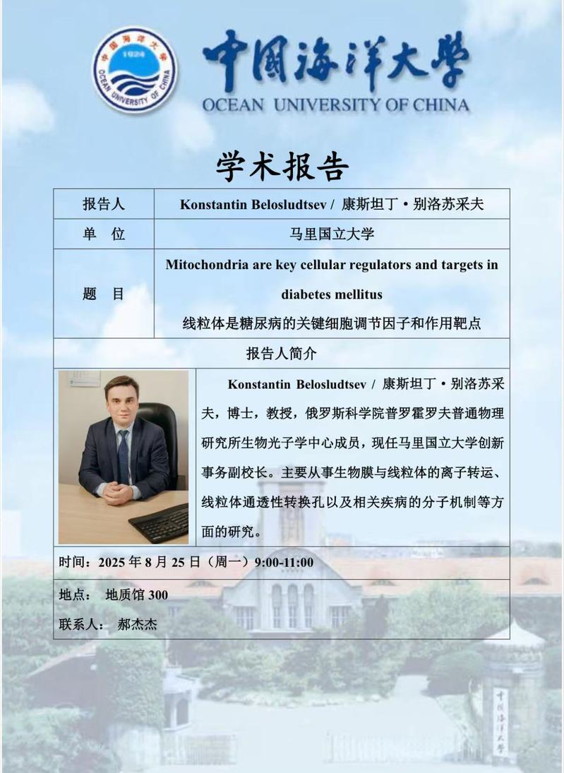 报告题目:线粒体是糖尿病的关键细胞调节因子和作用靶点