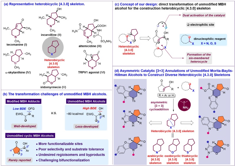 图2. 杂双环[4.3.0]骨架的不对称催化构建