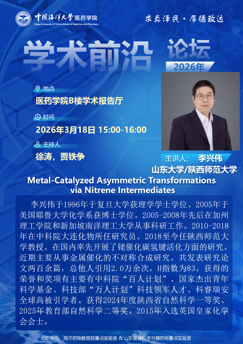 学术报告:Metal-Catalyzed Asymmetric Transformations via Nitrene Intermediates